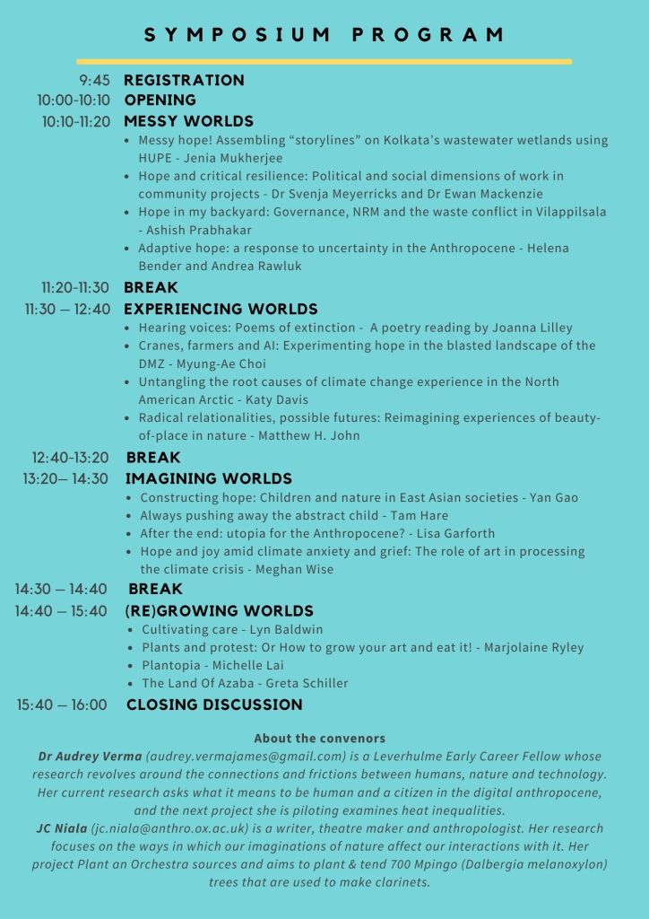 What does it mean to live, hope and resist in the anthropocene? What does environmental participation and being human entail in the ‘age of extinction’? In this symposium, we reflect on hope and resistance as a response to life and loss in the anthropocene, and ask what sustains us and what it means in practice and theory to be citizens and humans in these trying times